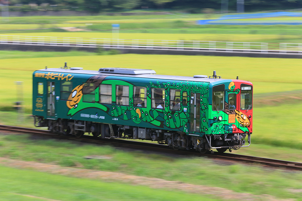 予土線普通列車として走っている海洋堂ホビートレイン「かっぱうようよ号」撮影・坪内政美